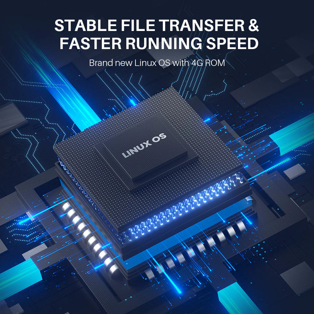 - Conectividad inteligente: transferencias Wi-Fi estables con soporte para múltiples redes.